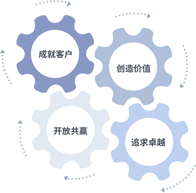 成就客户是一切决策的出发点,创造价值是衡量所有工作的标准,追求卓越是新宝GG做事做人的态度,开放共赢是新宝GG的格局也是最终的结果。价值观的齿轮环环相扣,推动着组织里的每个人不断向前。